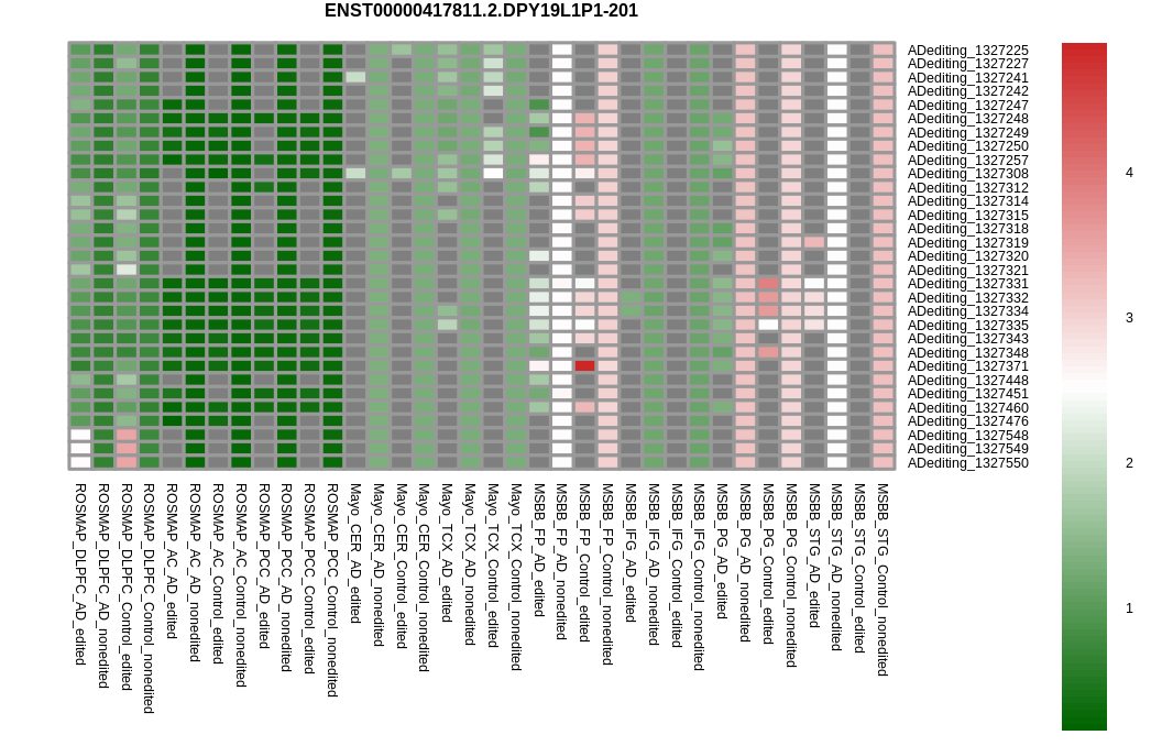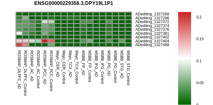 Differntial gene expression between RNA A-to-I edited versus non-edited samples for DPY19L1P1 |