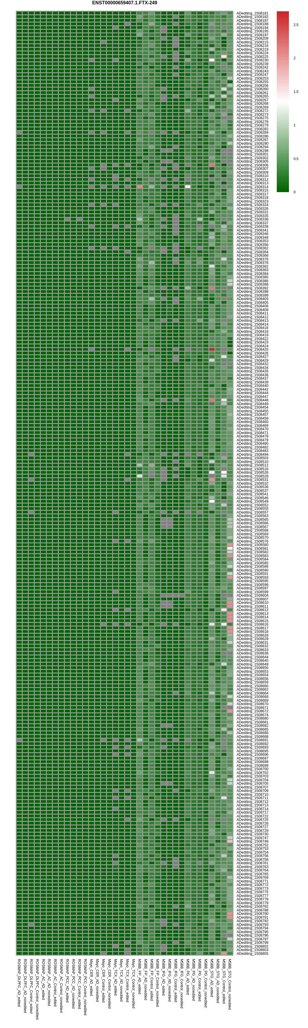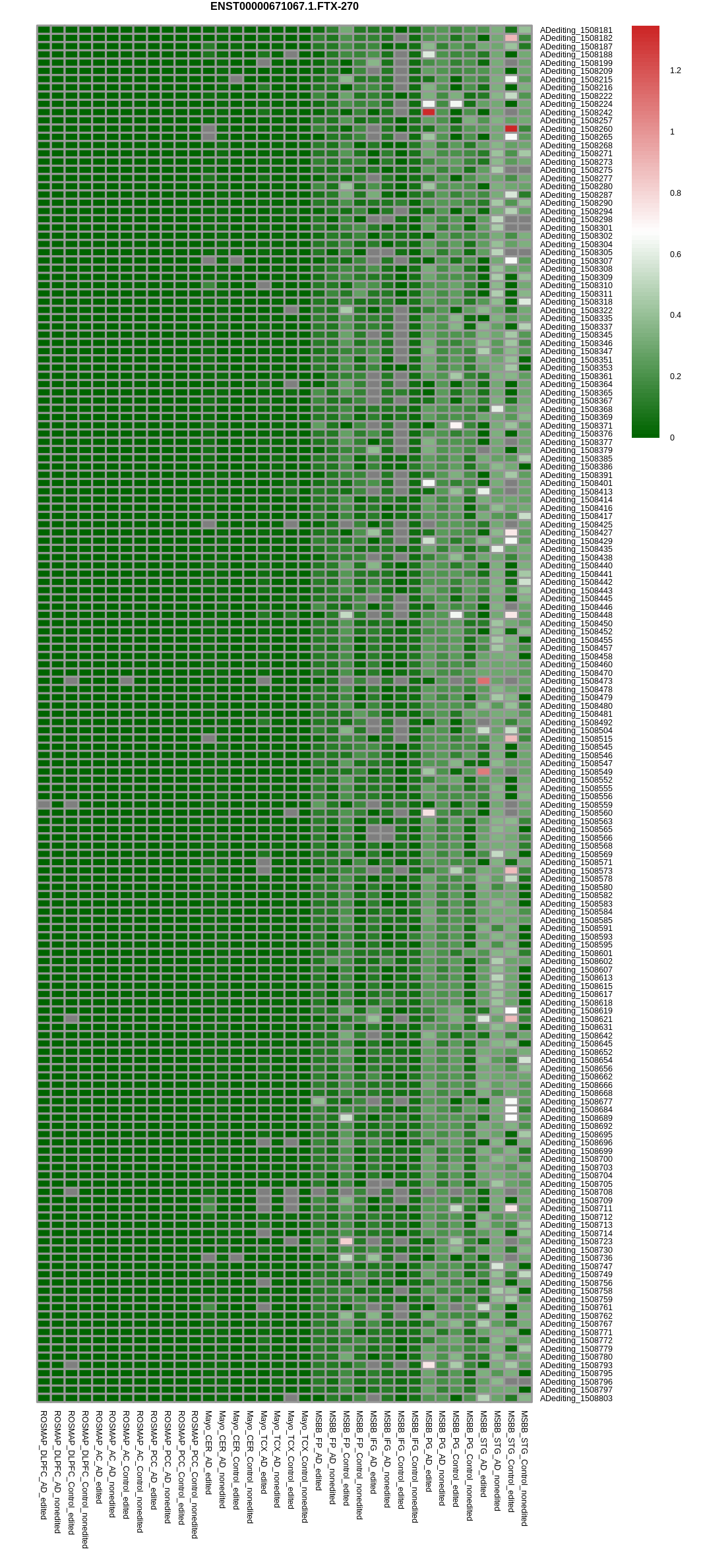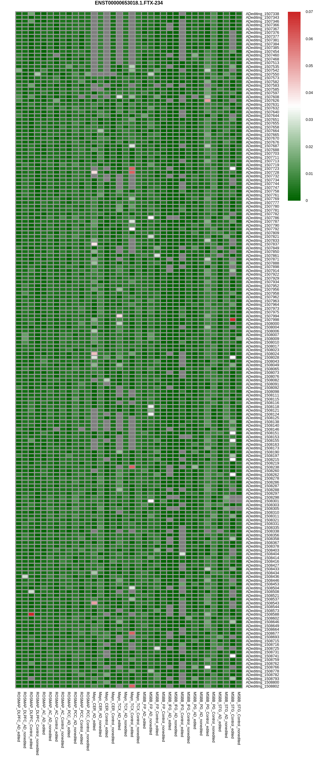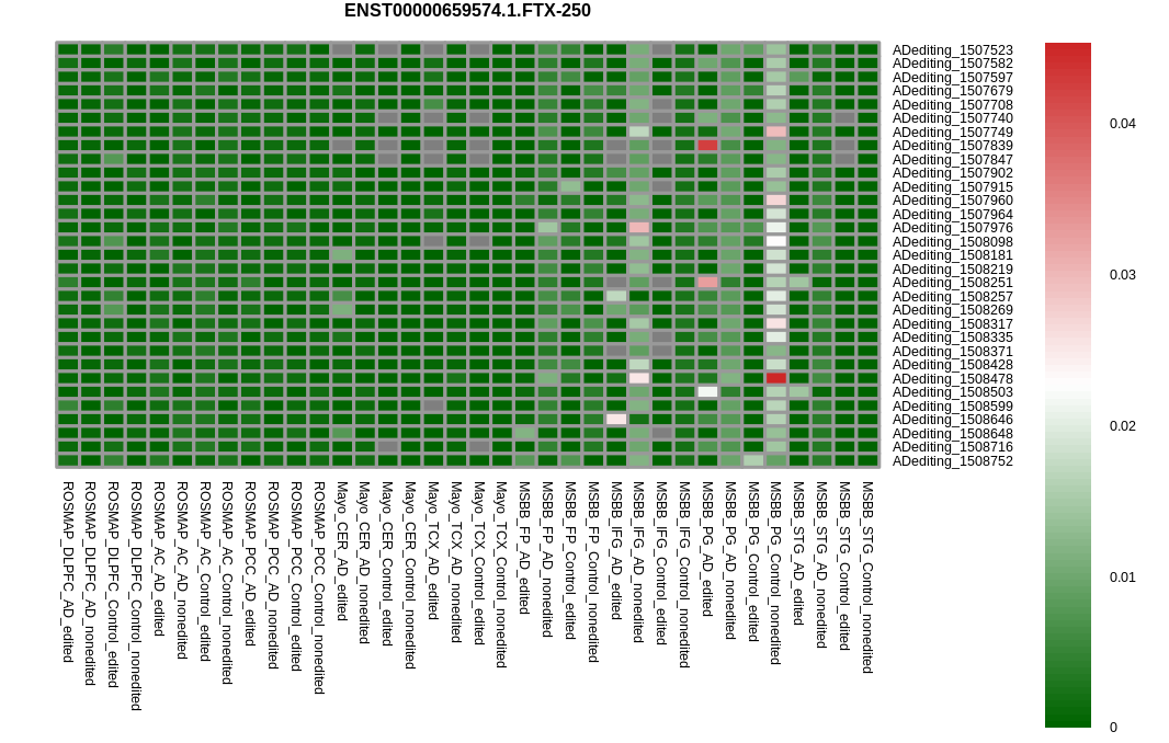 RNA editing positional annotations for FTX using Annovar |