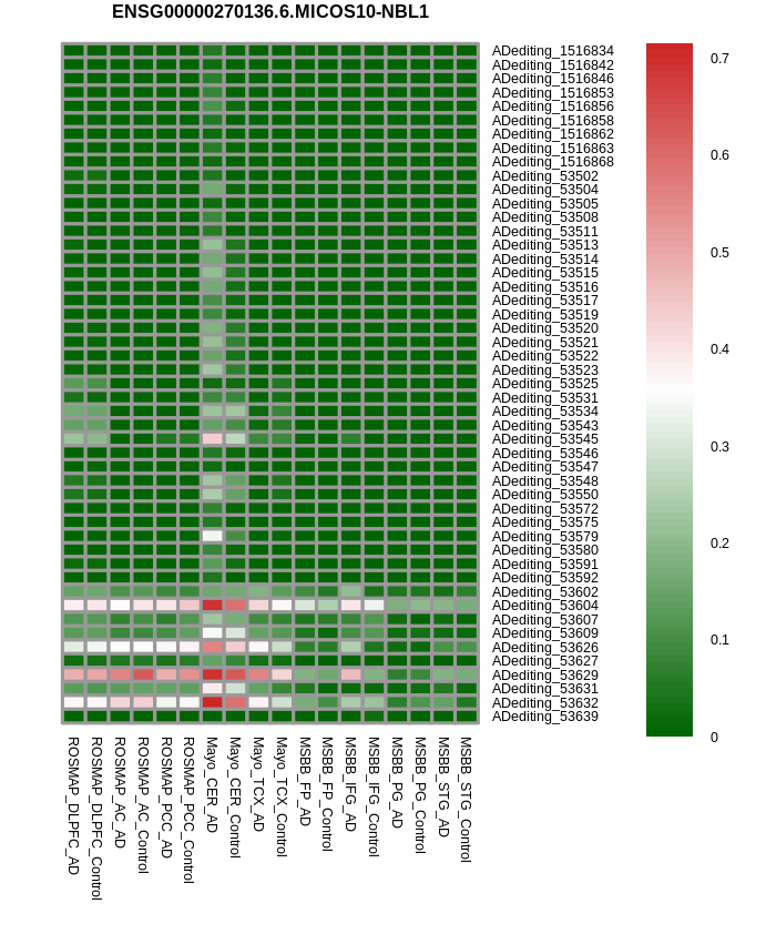 Differntial gene expression between RNA A-to-I edited versus non-edited samples for MICOS10-NBL1 |