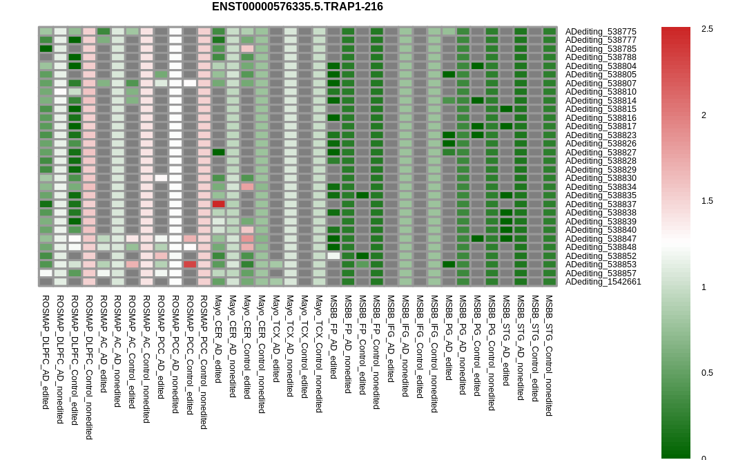 RNA editing positional annotations for TRAP1 using Annovar |