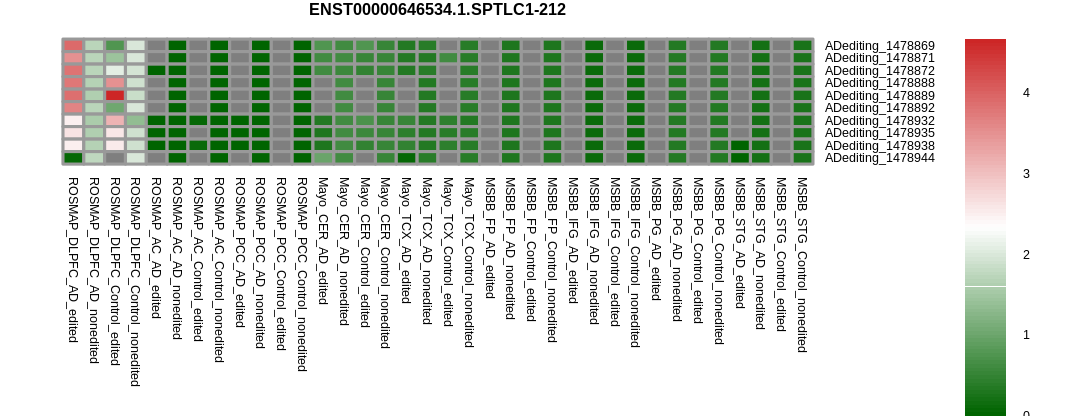 RNA editing positional annotations for SPTLC1 using Annovar |