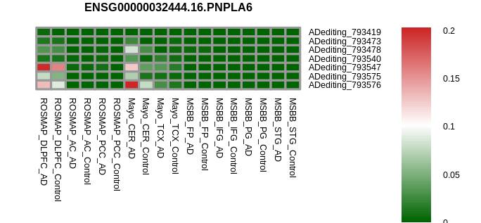 RNA A-to-I editings in the ROSMAP, MSBB, and Mayo data sets based on Ensembl gene isoform structure. |