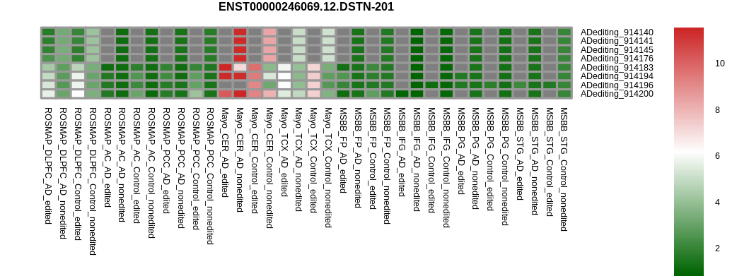 RNA editing positional annotations for DSTN using Annovar |