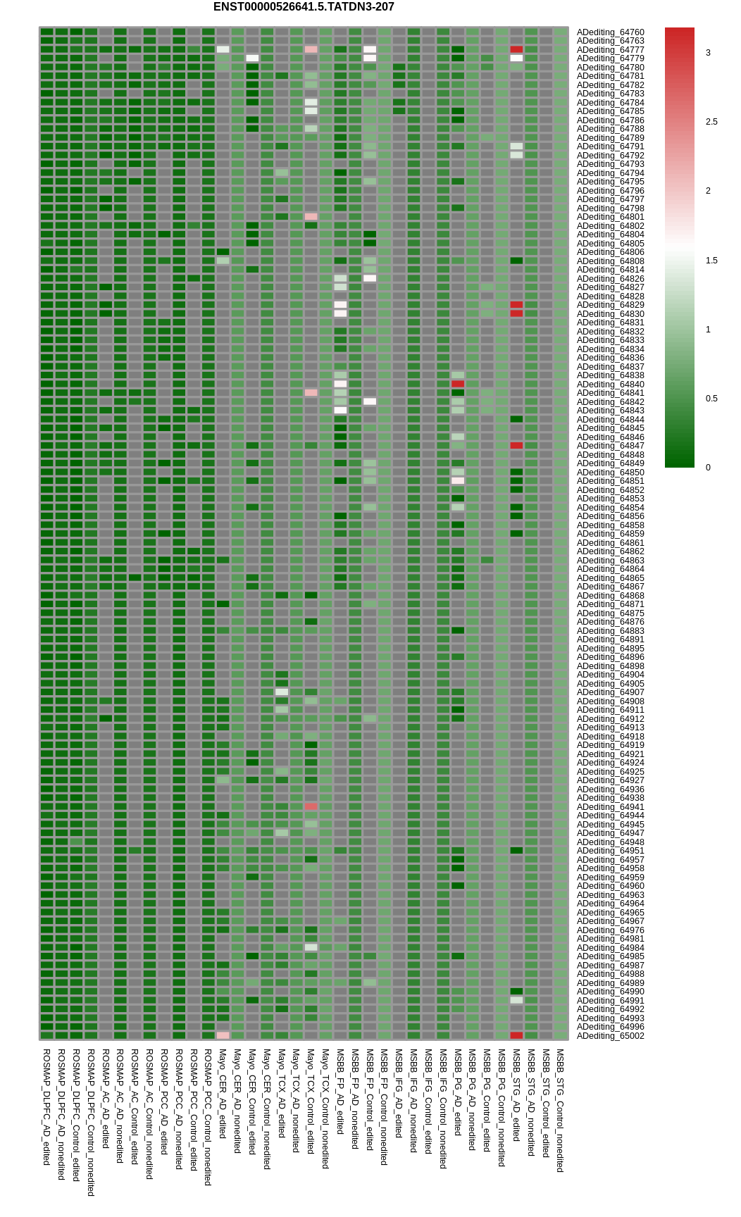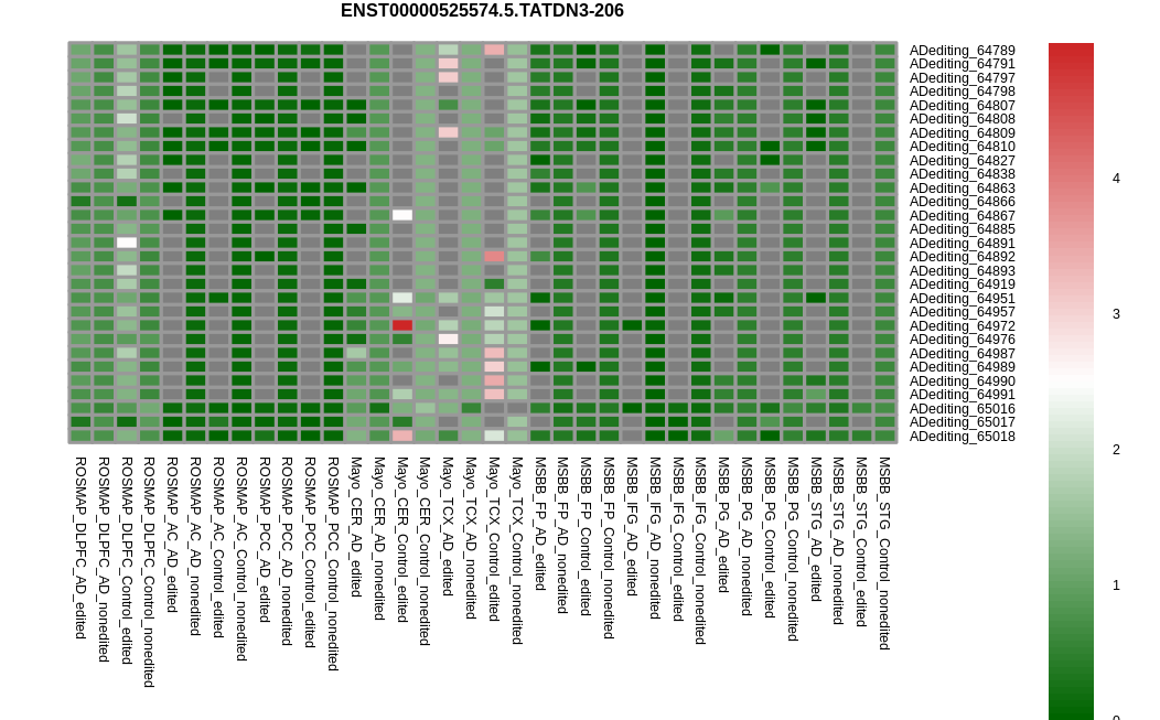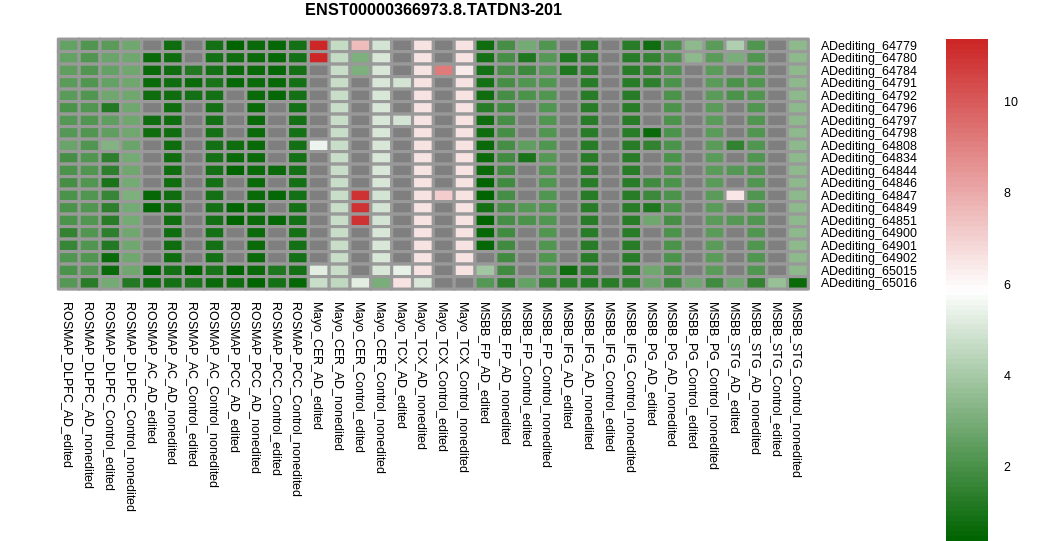 RNA editing positional annotations for TATDN3 using Annovar |