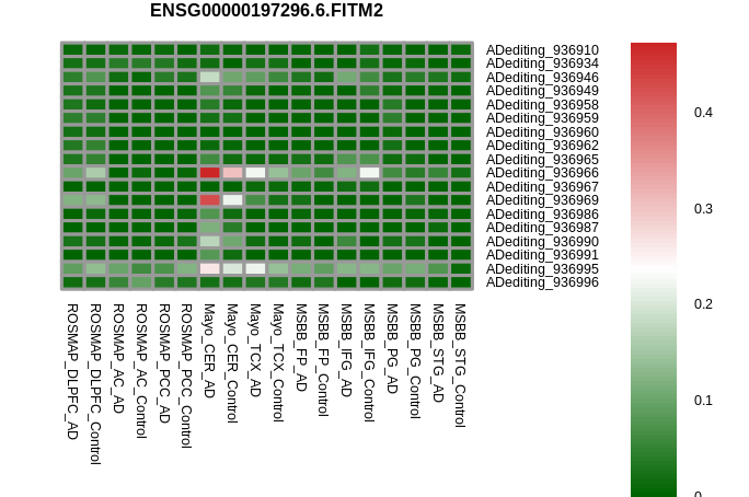 RNA editing positional annotations for FITM2 using Annovar |