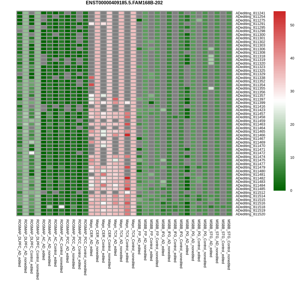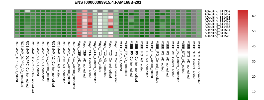 Differntial gene expression between RNA A-to-I edited versus non-edited samples for FAM168B |