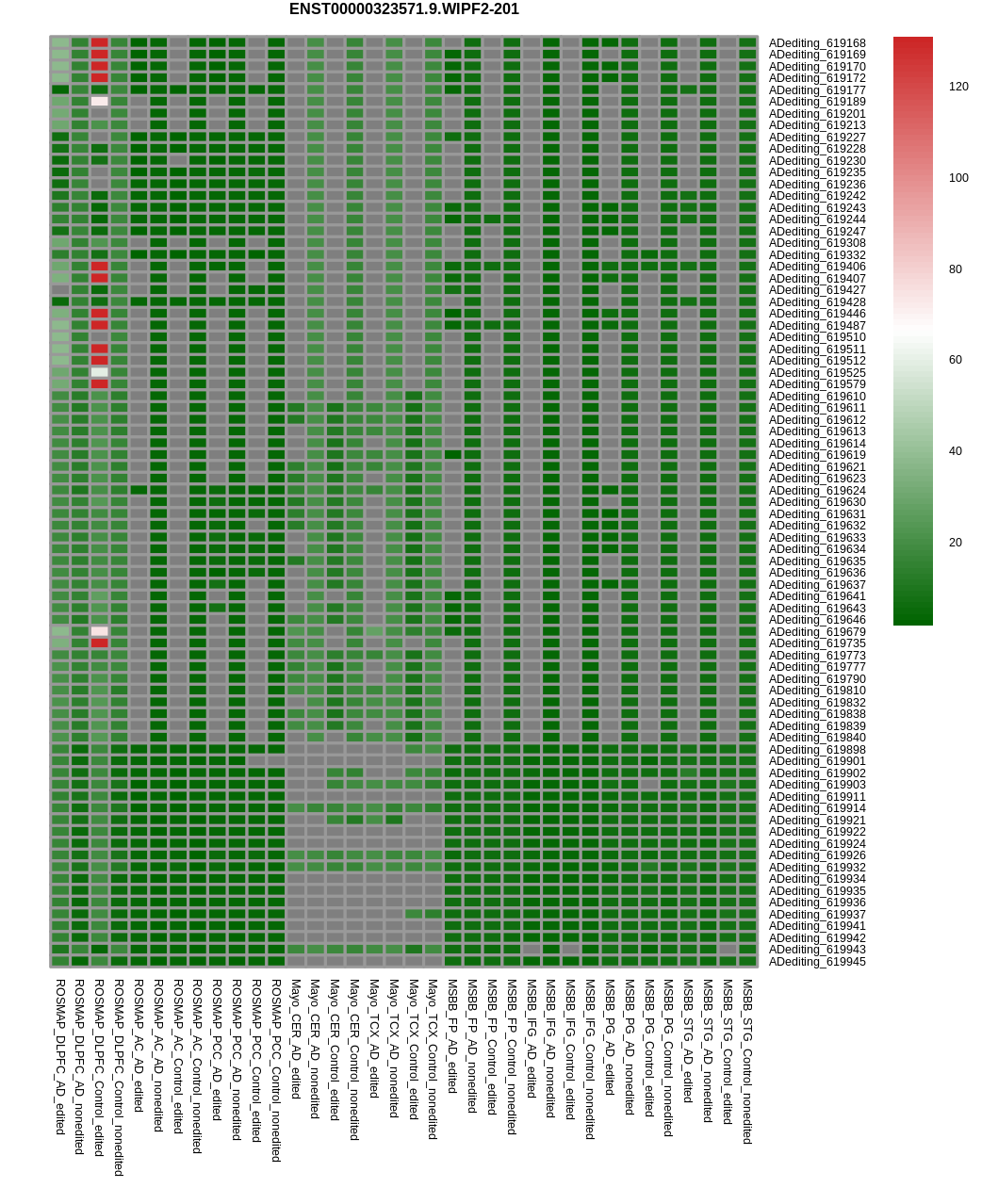 RNA editing positional annotations for WIPF2 using Annovar |