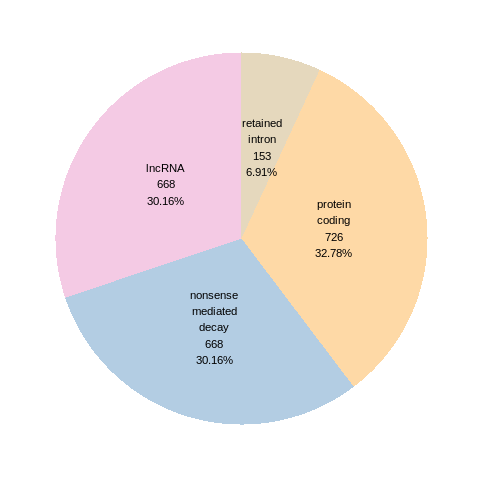 RNA A-to-I editing events in the ROSMAP, MSBB, and Mayo data sets based on Ensembl gene isoform structure. * This pie chart shows the number of RNA A-to-I editing events in different types of transcripts (# event, percentage). |