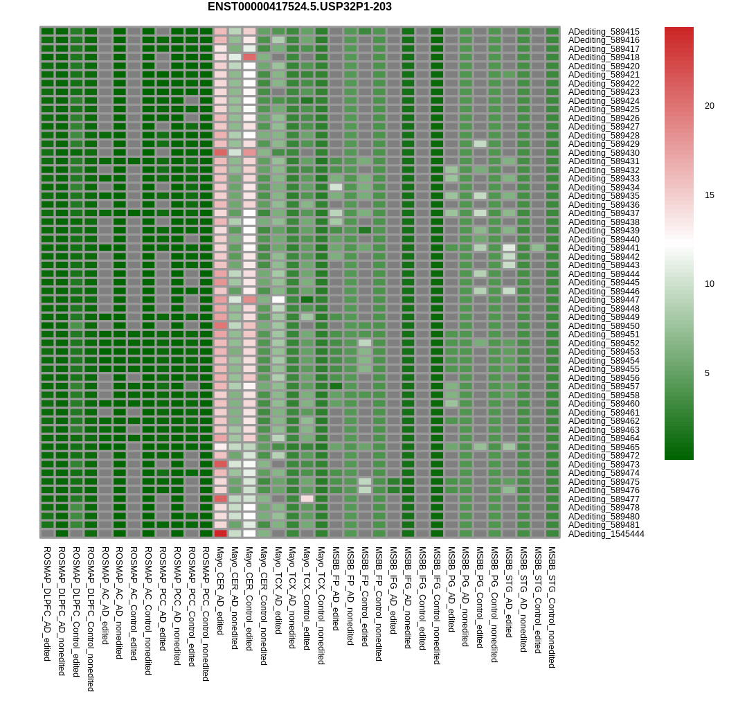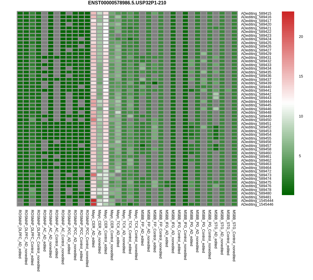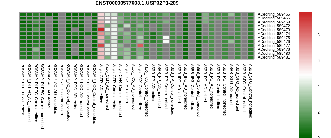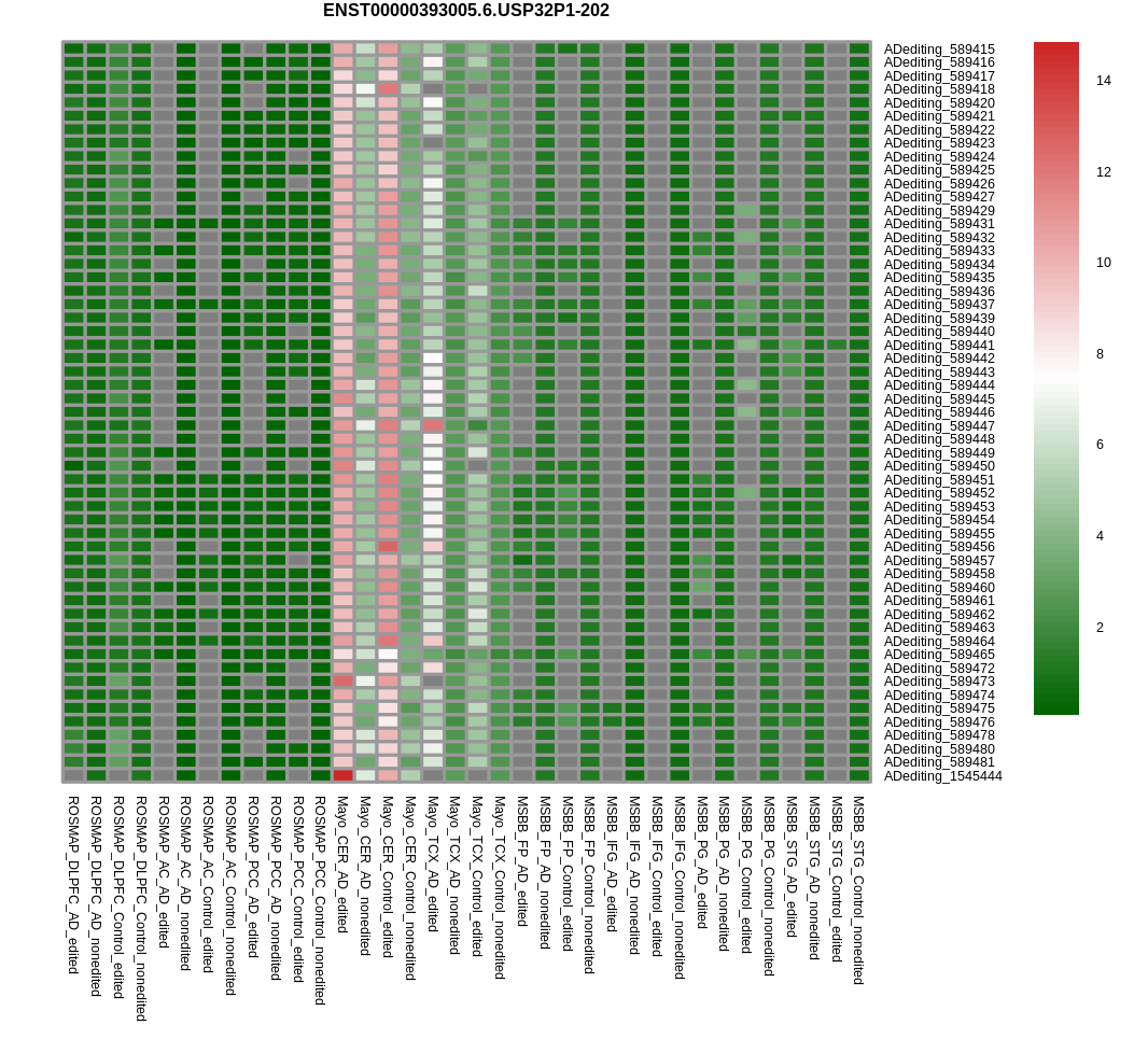 Differntial gene expression between RNA A-to-I edited versus non-edited samples for USP32P1 |