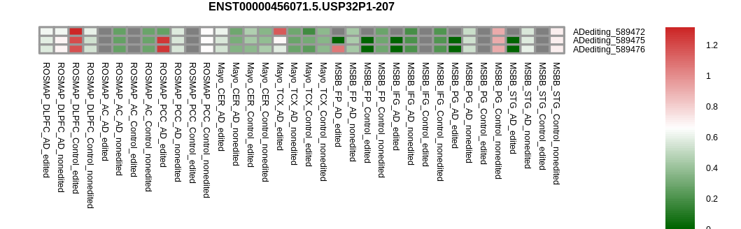RNA A-to-I editings in the ROSMAP, MSBB, and Mayo data sets based on Ensembl gene isoform structure. |