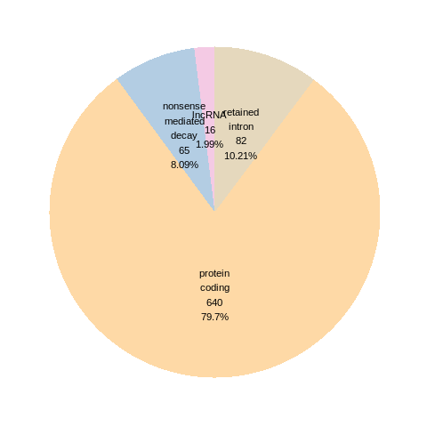 RNA A-to-I editing events in the ROSMAP, MSBB, and Mayo data sets based on Ensembl gene isoform structure. * This pie chart shows the number of RNA A-to-I editing events in different types of transcripts (# event, percentage). |