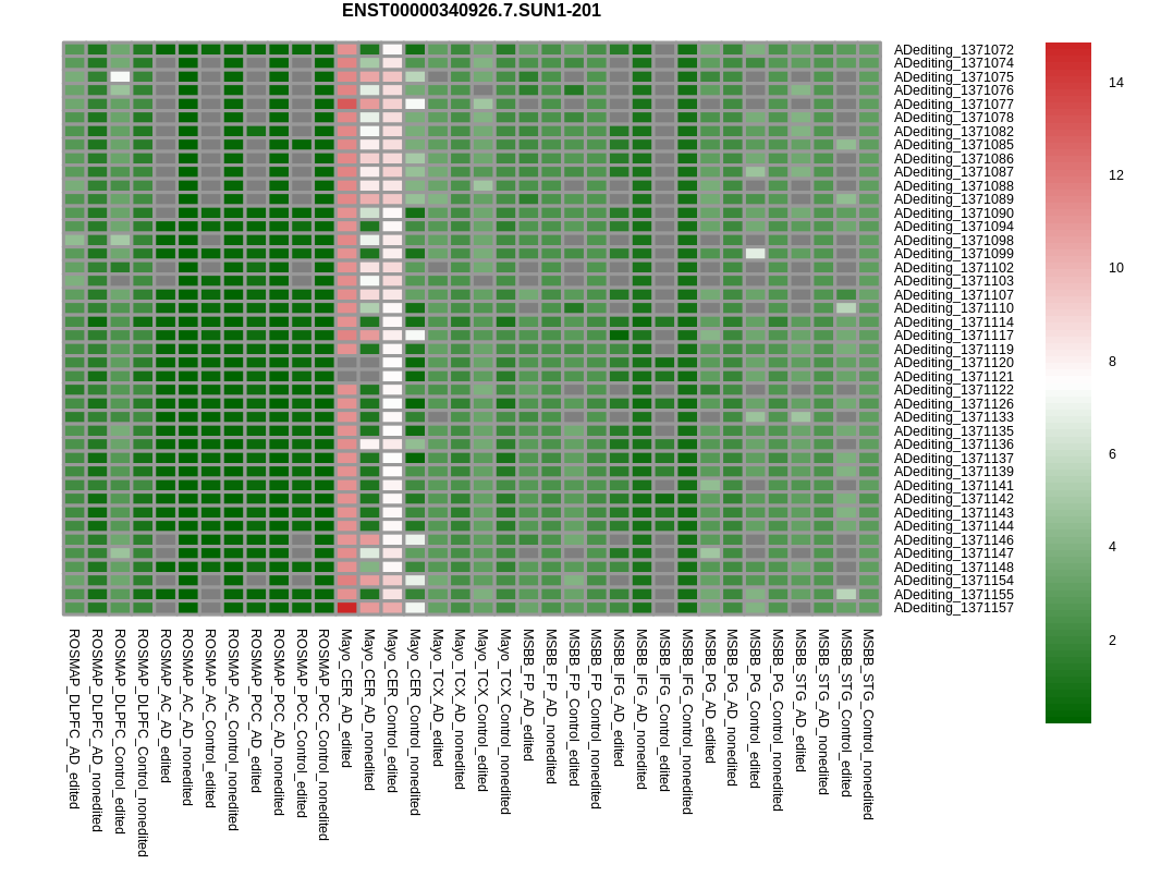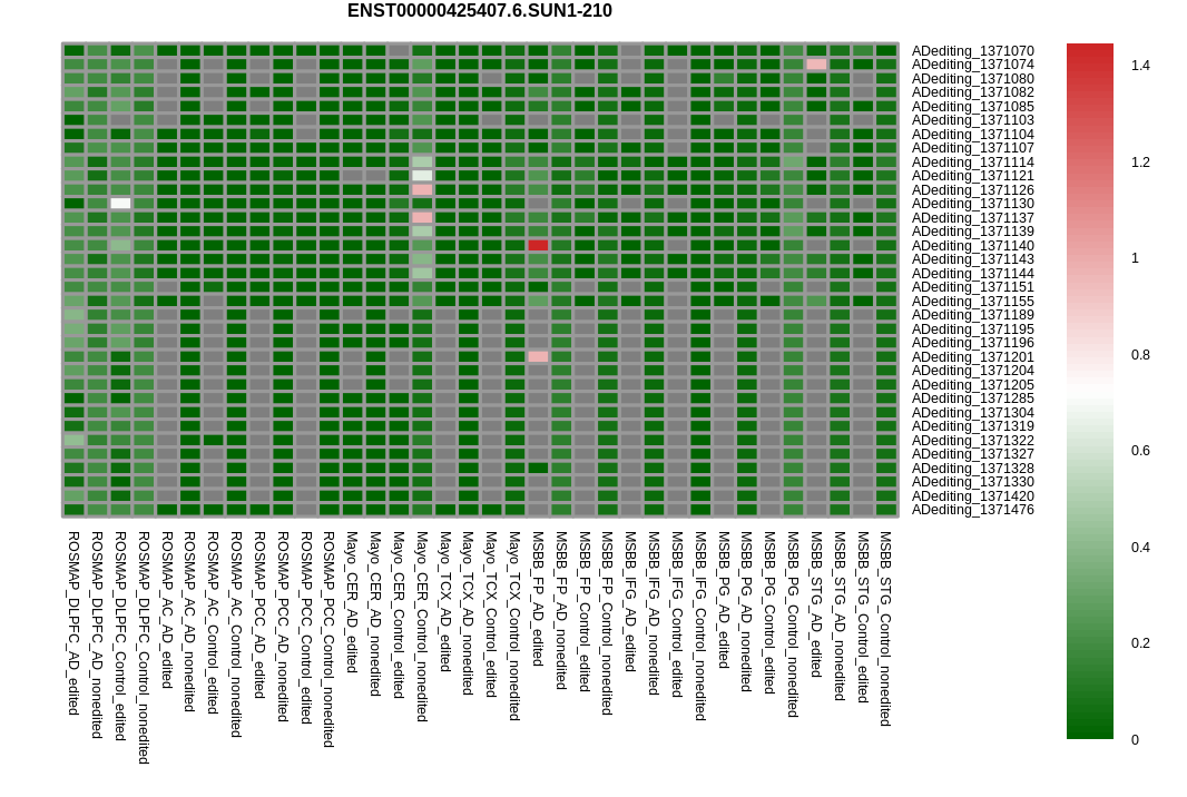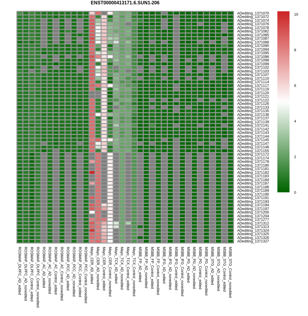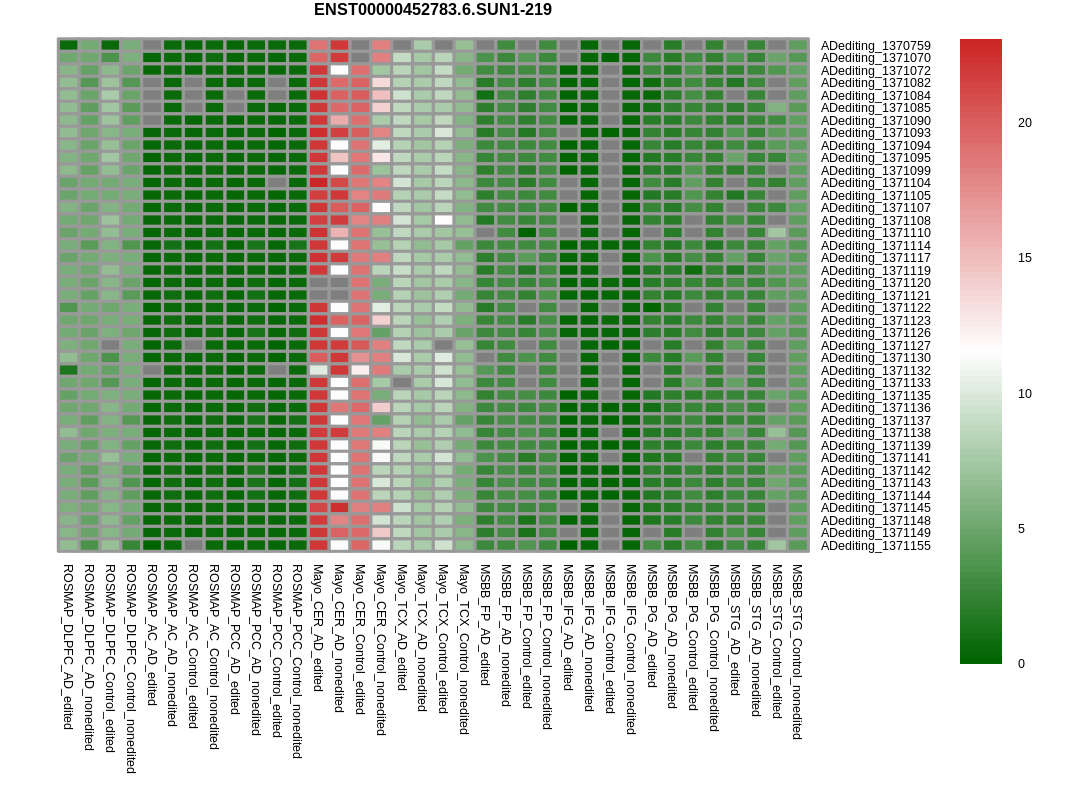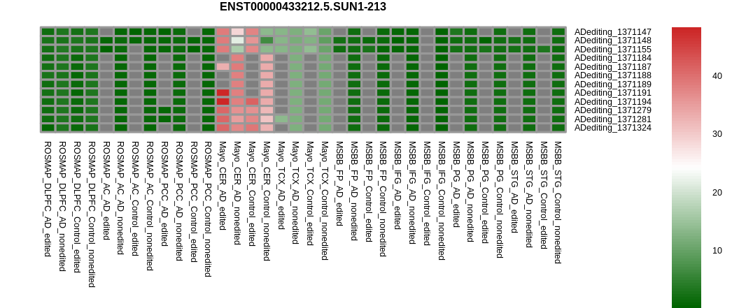 RNA editing positional annotations for SUN1 using Annovar |