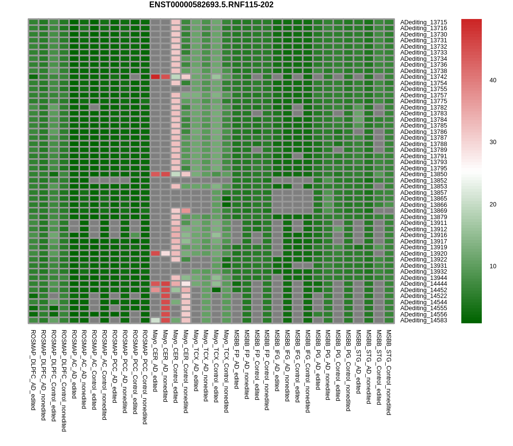 RNA editing positional annotations for RNF115 using Annovar |