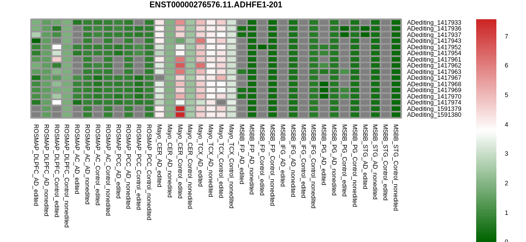 RNA A-to-I editing events in AD. |