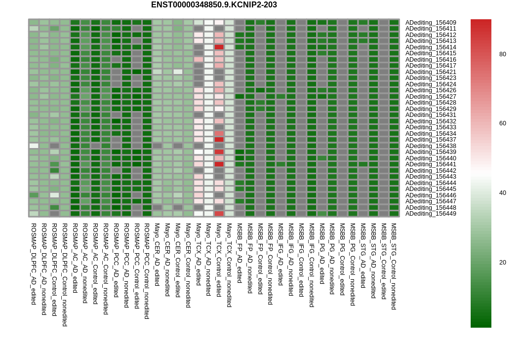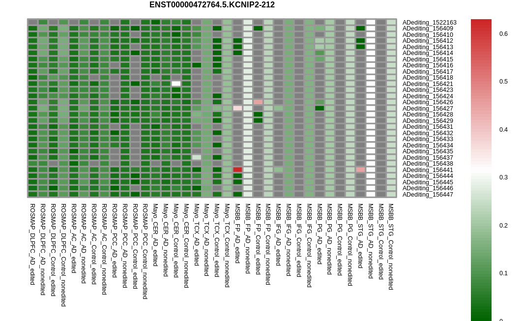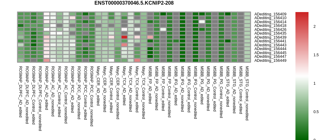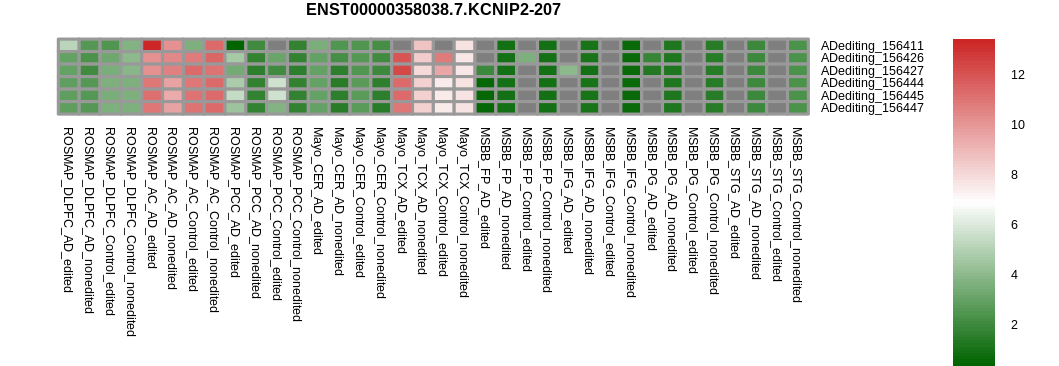 RNA A-to-I editing events in the alternative splicing sites for KCNIP2 |