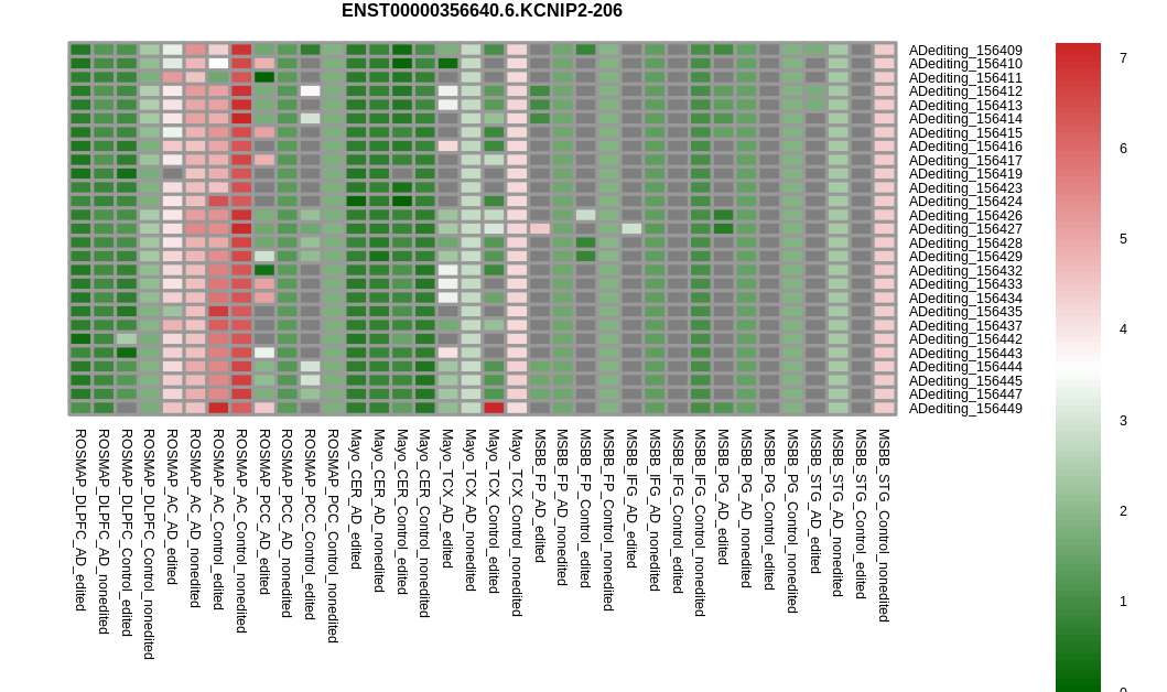 Differntial gene expression between RNA A-to-I edited versus non-edited samples for KCNIP2 |