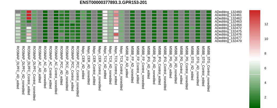 RNA A-to-I editing events in the alternative splicing sites for GPR153 |