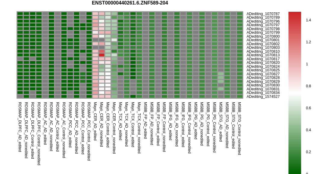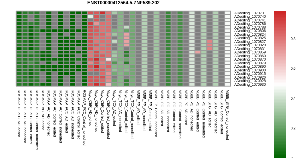 RNA editing positional annotations for ZNF589 using Annovar |
