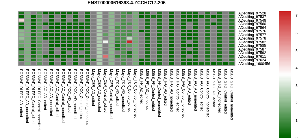 RNA A-to-I editing events in the alternative splicing sites for ZCCHC17 |