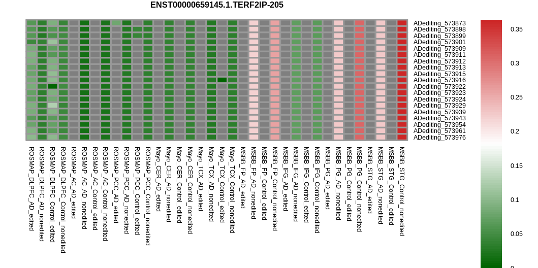 RNA editing positional annotations for TERF2IP using Annovar |