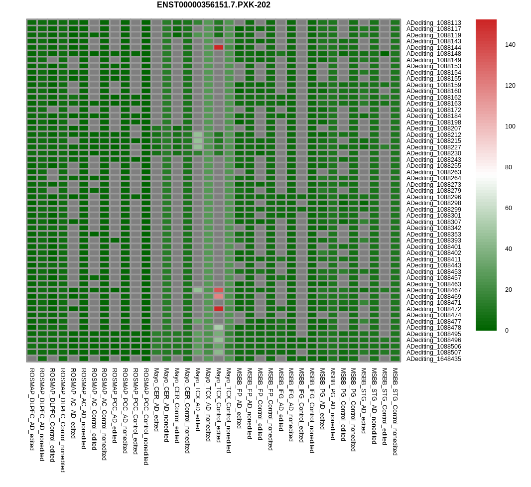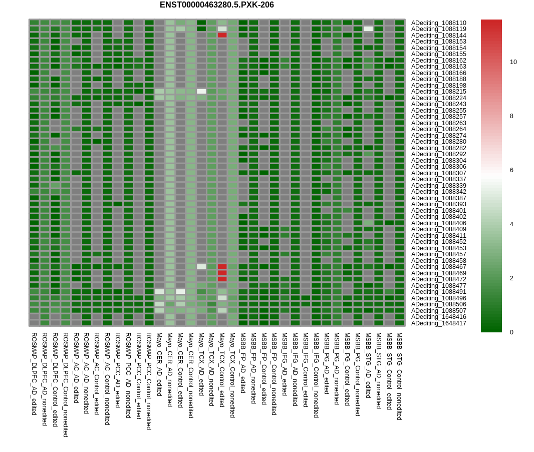RNA editing positional annotations for PXK using Annovar |
