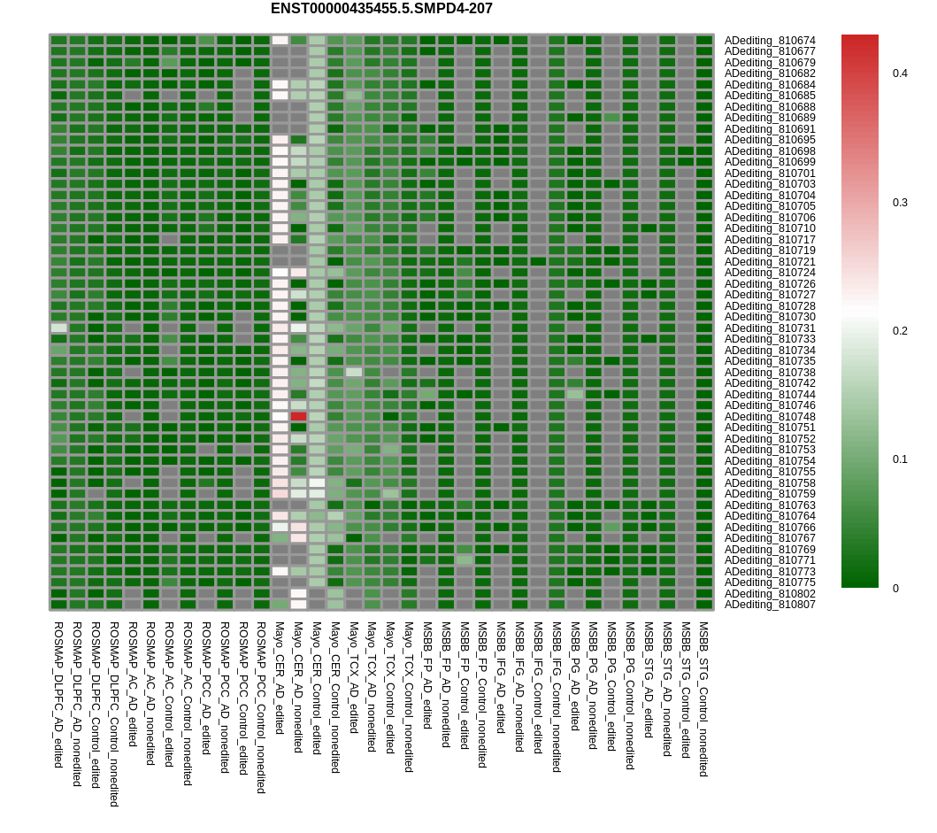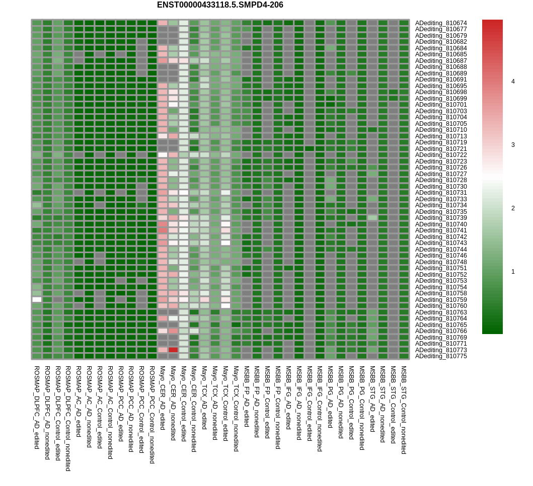 RNA editing positional annotations for SMPD4 using Annovar |
