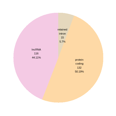 The number of RNA A-to-I editing events in different types of transcripts (# event, percentage). |