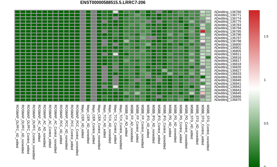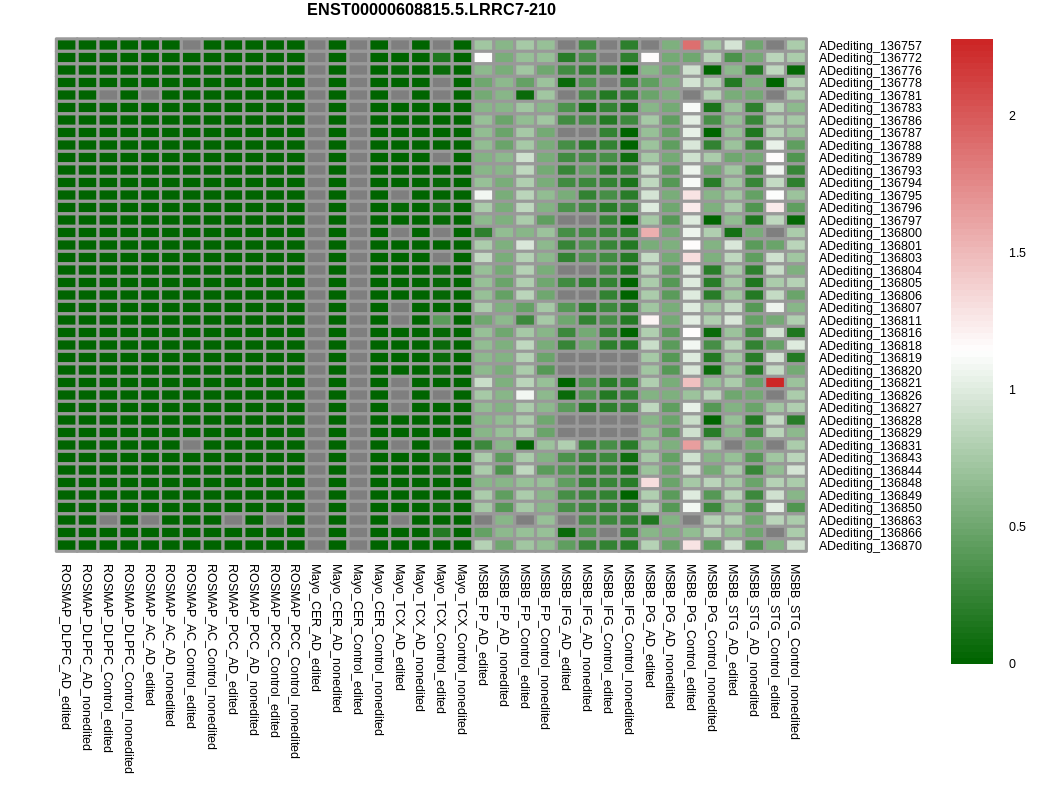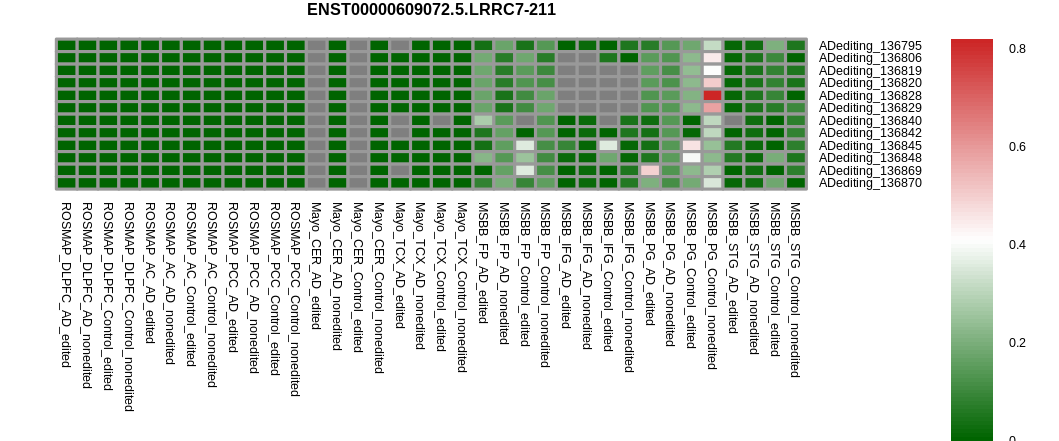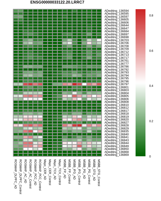| DLPFC | ADediting_136679 | chr1_70058262_+ | 0.31156876784939 | 0.0576591899947416 | 0.116830192141112 | -0.0892515309536638 | 1.34201202582022e-10 | 0.354295484322074 |