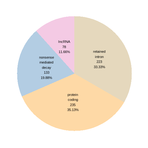 RNA A-to-I editing events in the ROSMAP, MSBB, and Mayo data sets based on Ensembl gene isoform structure. * This pie chart shows the number of RNA A-to-I editing events in different types of transcripts (# event, percentage). |