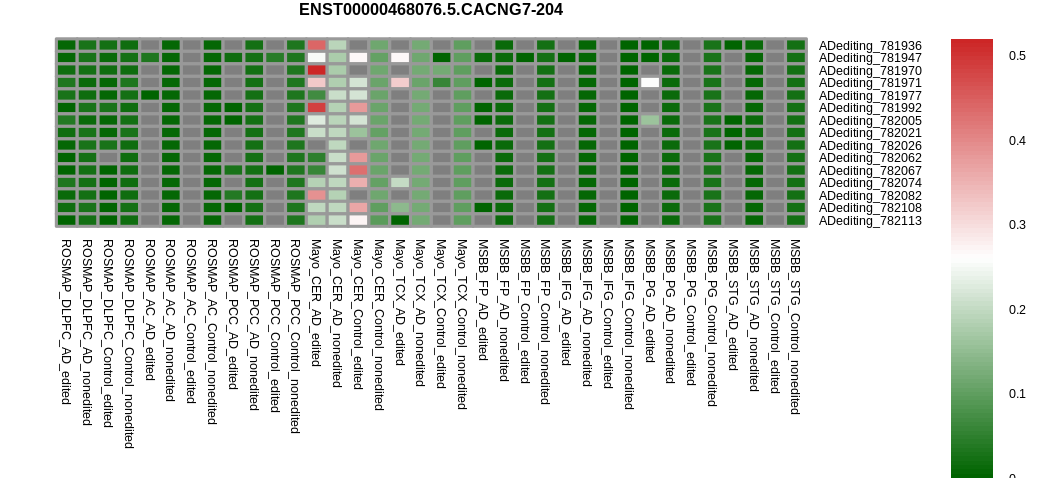 RNA editing positional annotations for CACNG7 using Annovar |