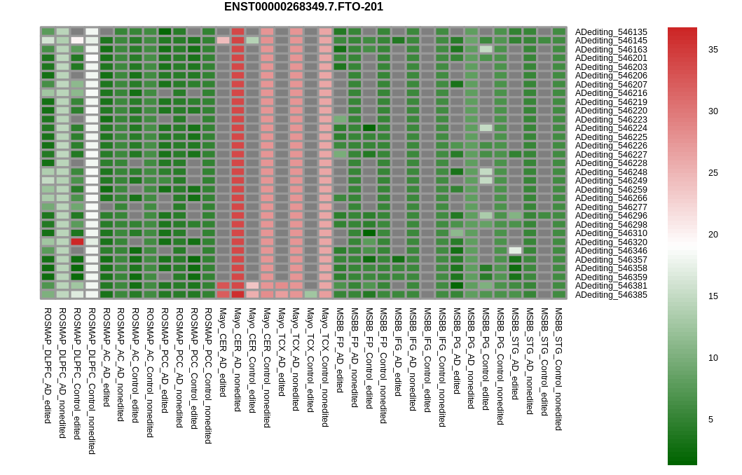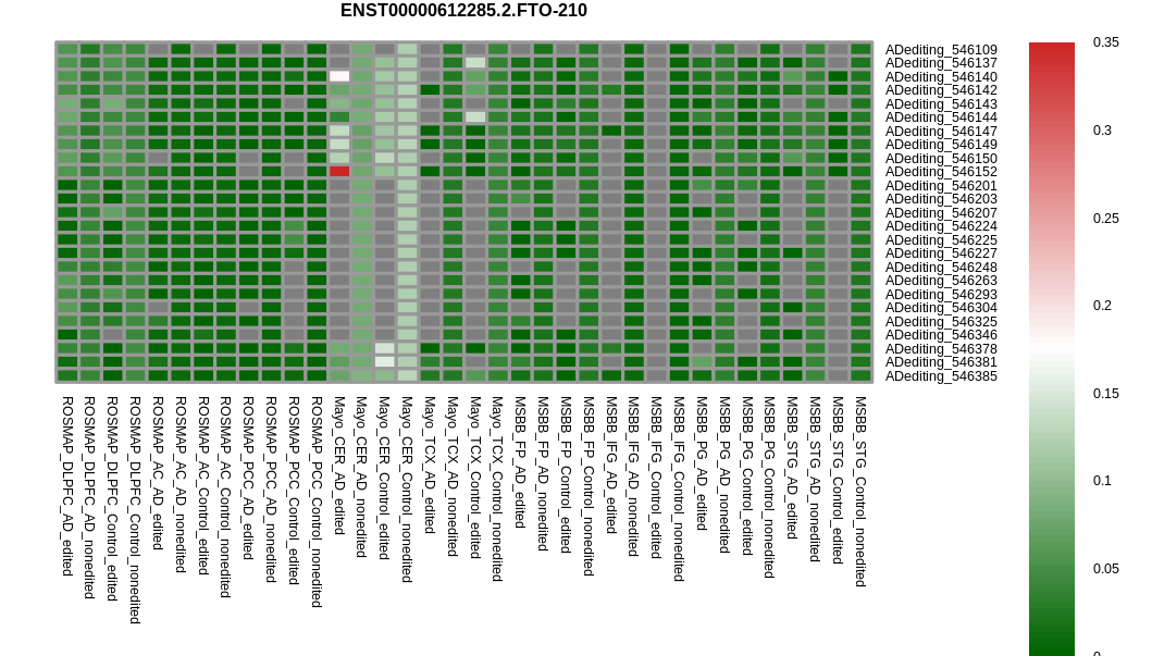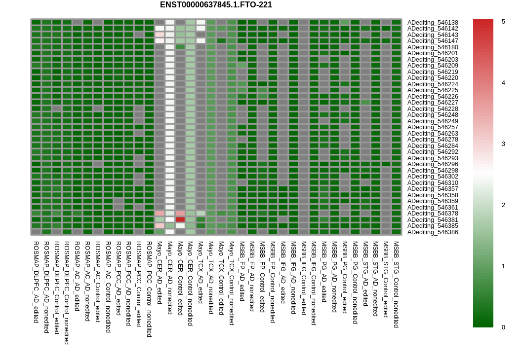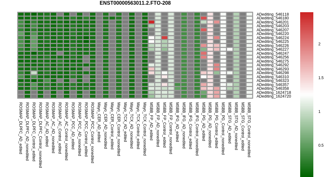 RNA editing positional annotations for FTO using Annovar |