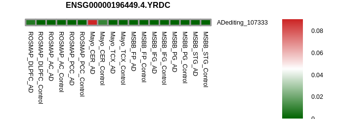 RNA A-to-I editing events in the alternative splicing sites for YRDC |