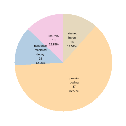 RNA A-to-I editing events in the ROSMAP, MSBB, and Mayo data sets based on Ensembl gene isoform structure. * This pie chart shows the number of RNA A-to-I editing events in different types of transcripts (# event, percentage). |