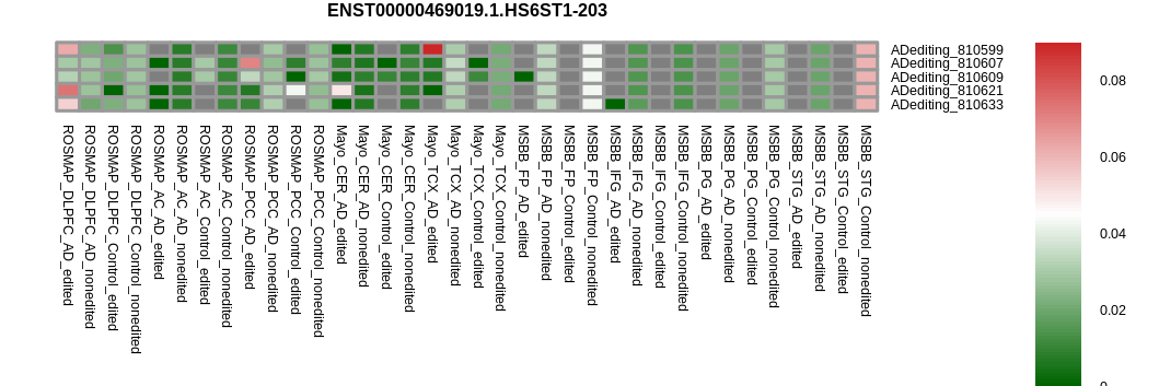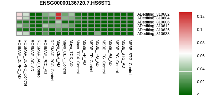 RNA A-to-I editing events in the alternative splicing sites for HS6ST1 |